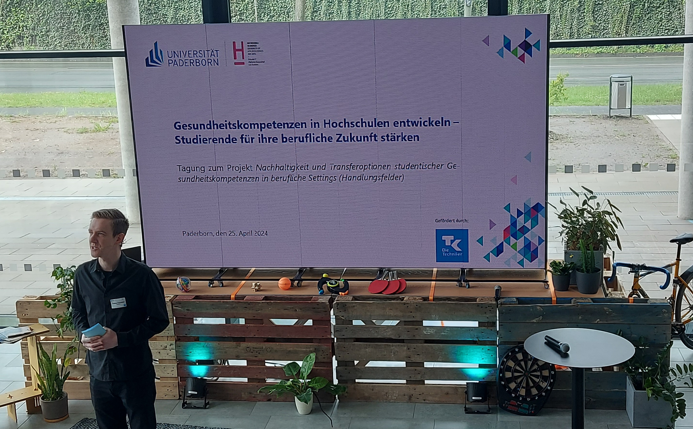 The newly established Start Up Center OWL at the University of Paderborn, complete with a “Maker Space” where students have the opportunity to put their own ideas and innovations into practice, offered not only an open, creative, but also an active environment for exchange, networking, expert knowledge, and discussion. Through various formats, the aim was to develop movement-related health competencies and empower students and faculty to lead active daily lives during their studies and careers. All in all, this provided ample inspiration for our own teaching and new research questions.