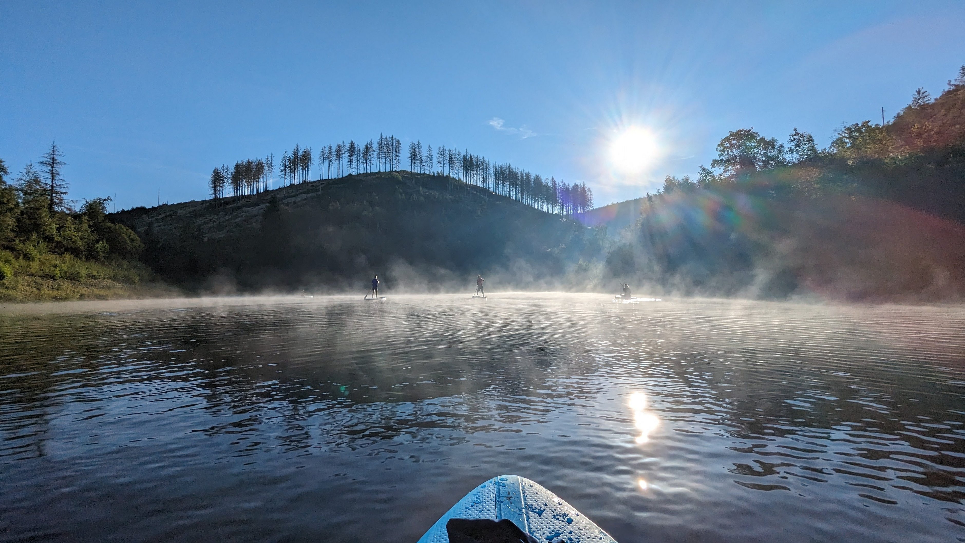 Komm vorbei, wenn du morgens lautlos über das klare Wasser der Okertalsperre gleiten möchtest. Genieße die Stille und die morgendliche Sonne auf dem Stand Up Paddle Board und lass uns gemeinsam die Seitenarme der Oker erkunden. 🌞