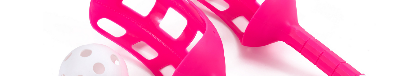 Legen Sie den Ball in die untere Mulde des Schlägers. Halten Sie denSchläger senkrecht. Hole sie mit ausgestrecktem Arm weit
